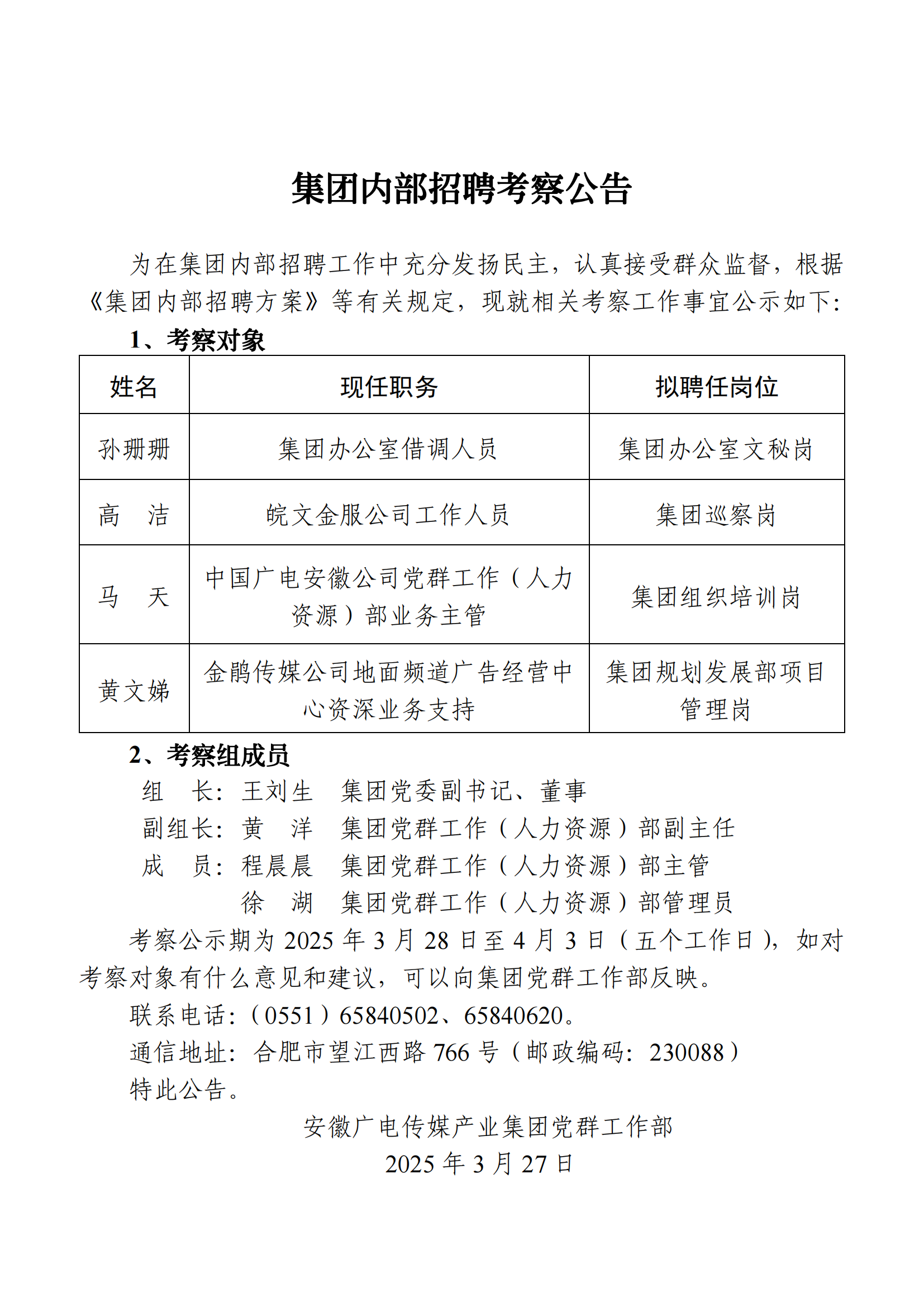集團(tuán)內(nèi)部招聘考察公告