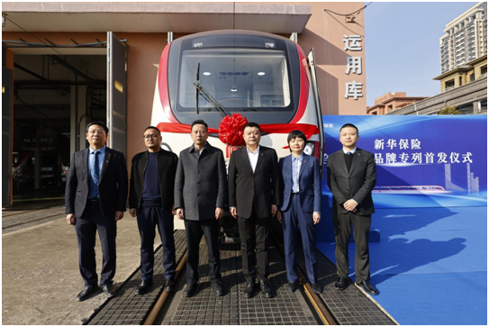 在“新華保險(xiǎn)號(hào)”地鐵專(zhuān)列車(chē)頭前,王劉生與新華保險(xiǎn)安徽分公司黨委書(shū)記、主要負(fù)責(zé)人李軍先生共同為列車(chē)揭幕,宣布“新華保險(xiǎn)號(hào)”地鐵專(zhuān)列正式上線。
