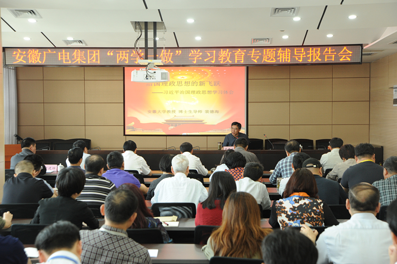 5月25日,集團(tuán)黨委組織召開集團(tuán)“兩學(xué)一做”學(xué)習(xí)教育專題輔導(dǎo)報告會,安徽大學(xué)哲學(xué)系教授、哲學(xué)博士、博士生導(dǎo)師、安徽省委宣講團(tuán)成員裴德海教授,為集團(tuán)70余名黨員干部作了題為《治國理政思想的新飛躍——習(xí)近平總書記治國理政系列思想解讀》專題輔導(dǎo)報告。會議由集團(tuán)董事、黨委副書記袁超主持。