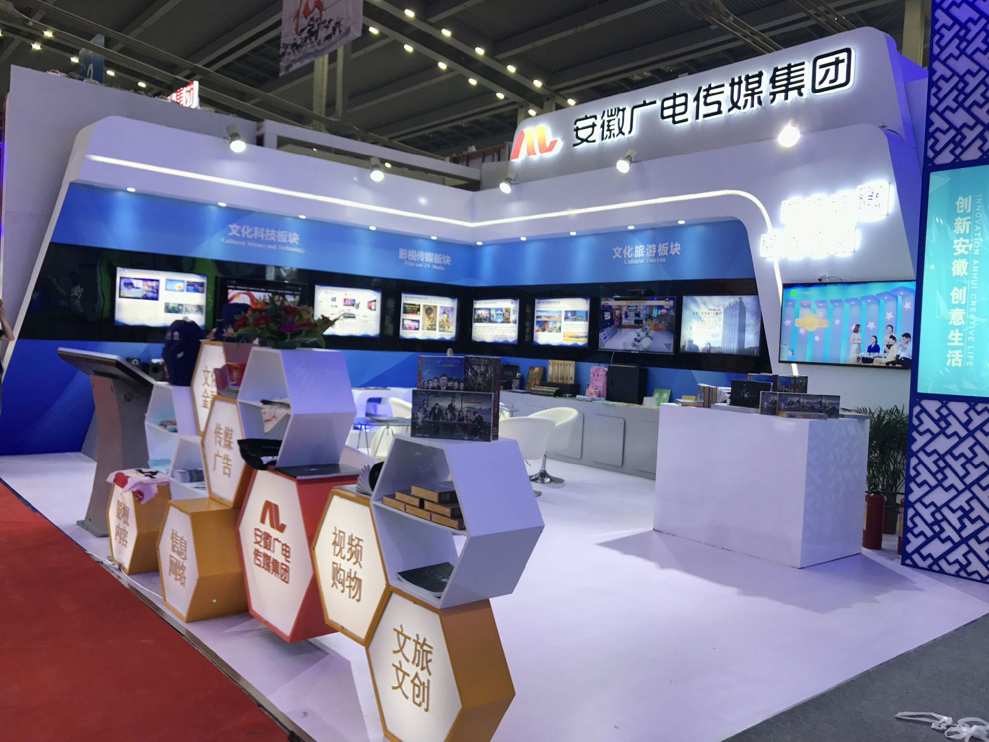 此次文博會,安徽展區(qū)以“創(chuàng)新安徽 創(chuàng)意生活”為主題,整體呈現(xiàn)了科技感和豐富的文化產(chǎn)業(yè)內(nèi)容,生動展示了我省經(jīng)濟文化發(fā)展新面貌。集團以“幸福+連接”為主題,緊扣“新、精、炫”要求,重點圍繞 “文化科技”“影視傳媒”“文旅文創(chuàng)”三大版塊,創(chuàng)意推出了集團產(chǎn)業(yè)一系列創(chuàng)新成果和項目。集團所屬金鵑傳媒公司同時承擔了安徽新媒體集團、安徽出版集團、科大訊飛展館的搭建服務執(zhí)行工作,獲得省文化廳高度肯定。