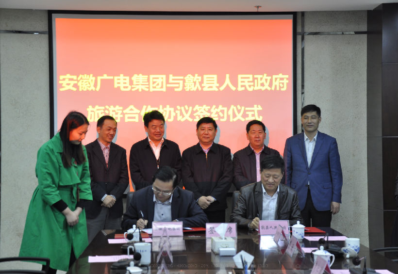 11月17日,安徽廣電集團(tuán)與歙縣人民政府在合肥簽訂文化旅游合作協(xié)議。省委宣傳部副部長、省文化改革發(fā)展辦公室主任董慶,省旅游局局長萬以學(xué),黃山市委常委、常務(wù)副市長周勇出席儀式并講話。集團(tuán)董事長、黨委書記聶慶義,歙縣縣委書記胡仕圣分別致辭。集團(tuán)總經(jīng)理沈天鷹、歙縣人民政府縣長黃仁麟分別代表雙方簽約。集團(tuán)常務(wù)副總經(jīng)理黃偉主持簽約儀式。