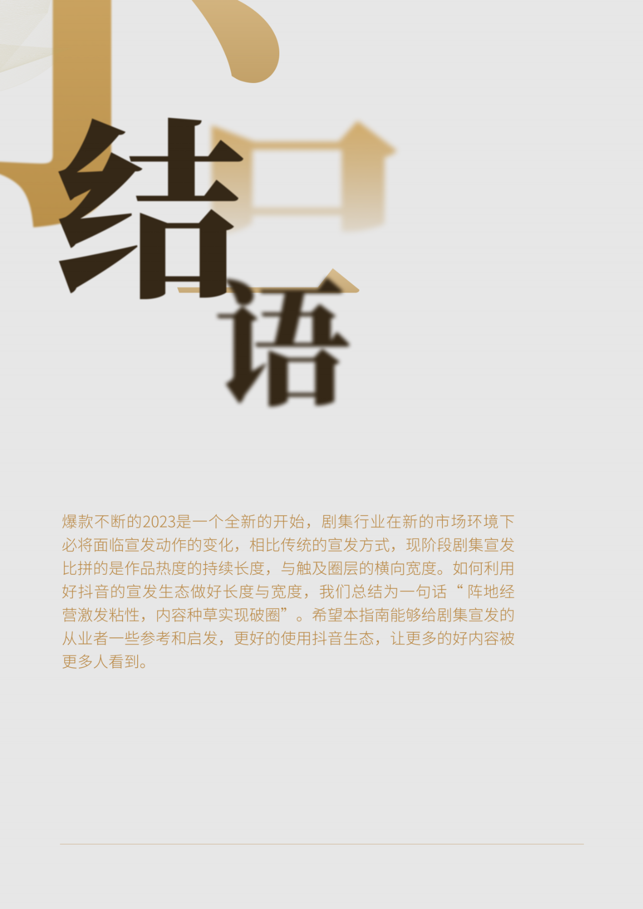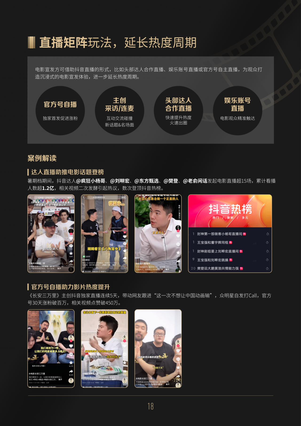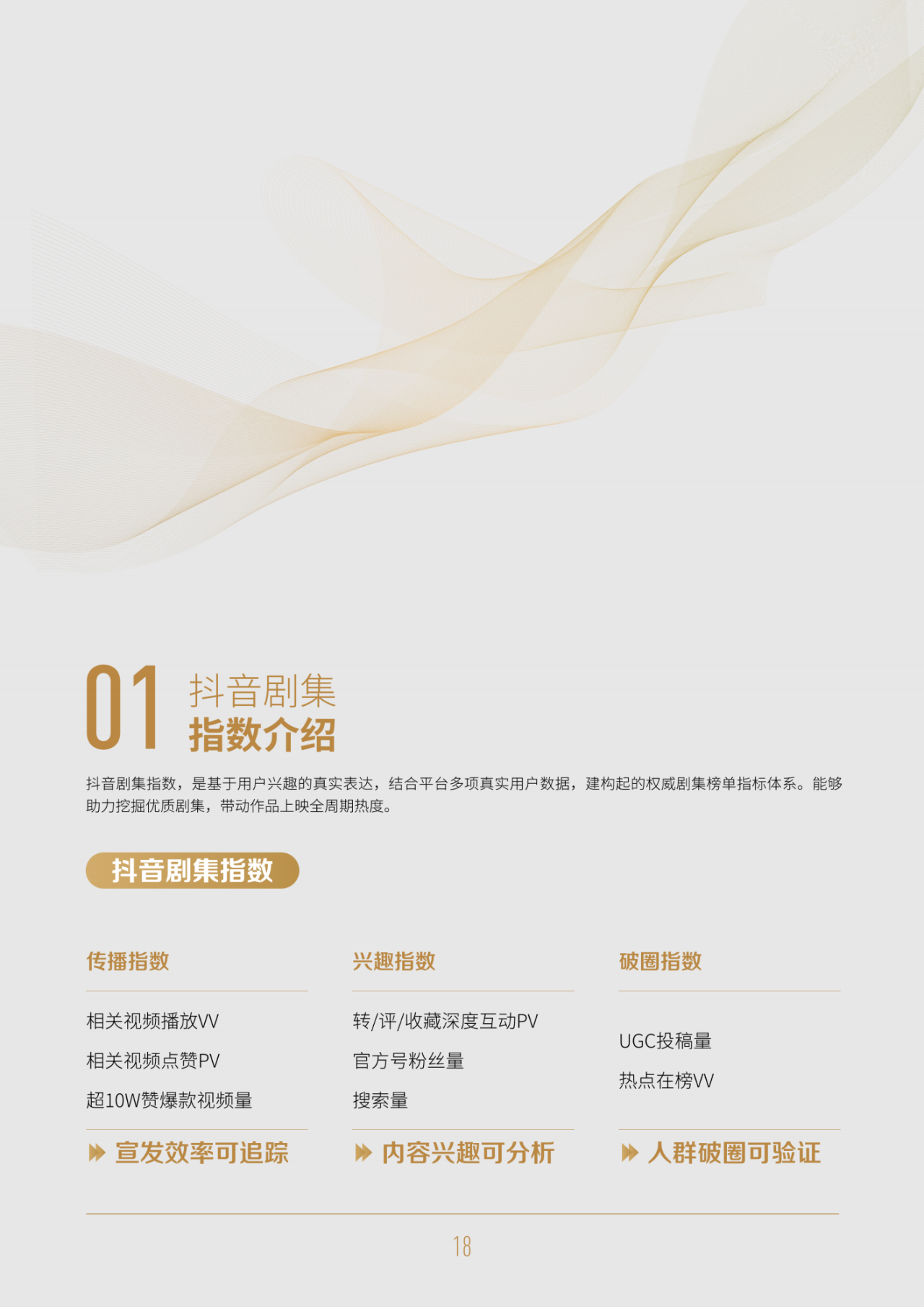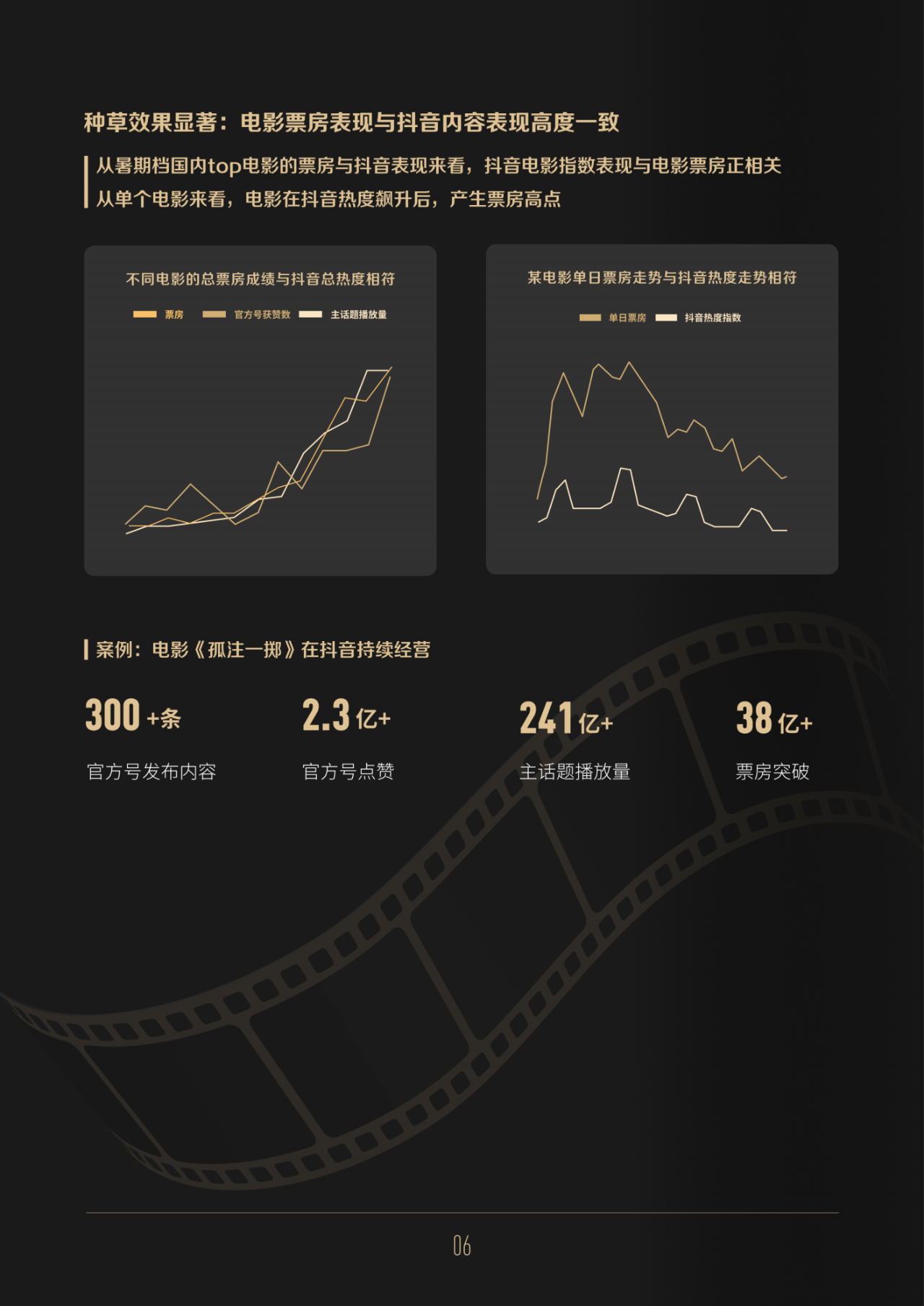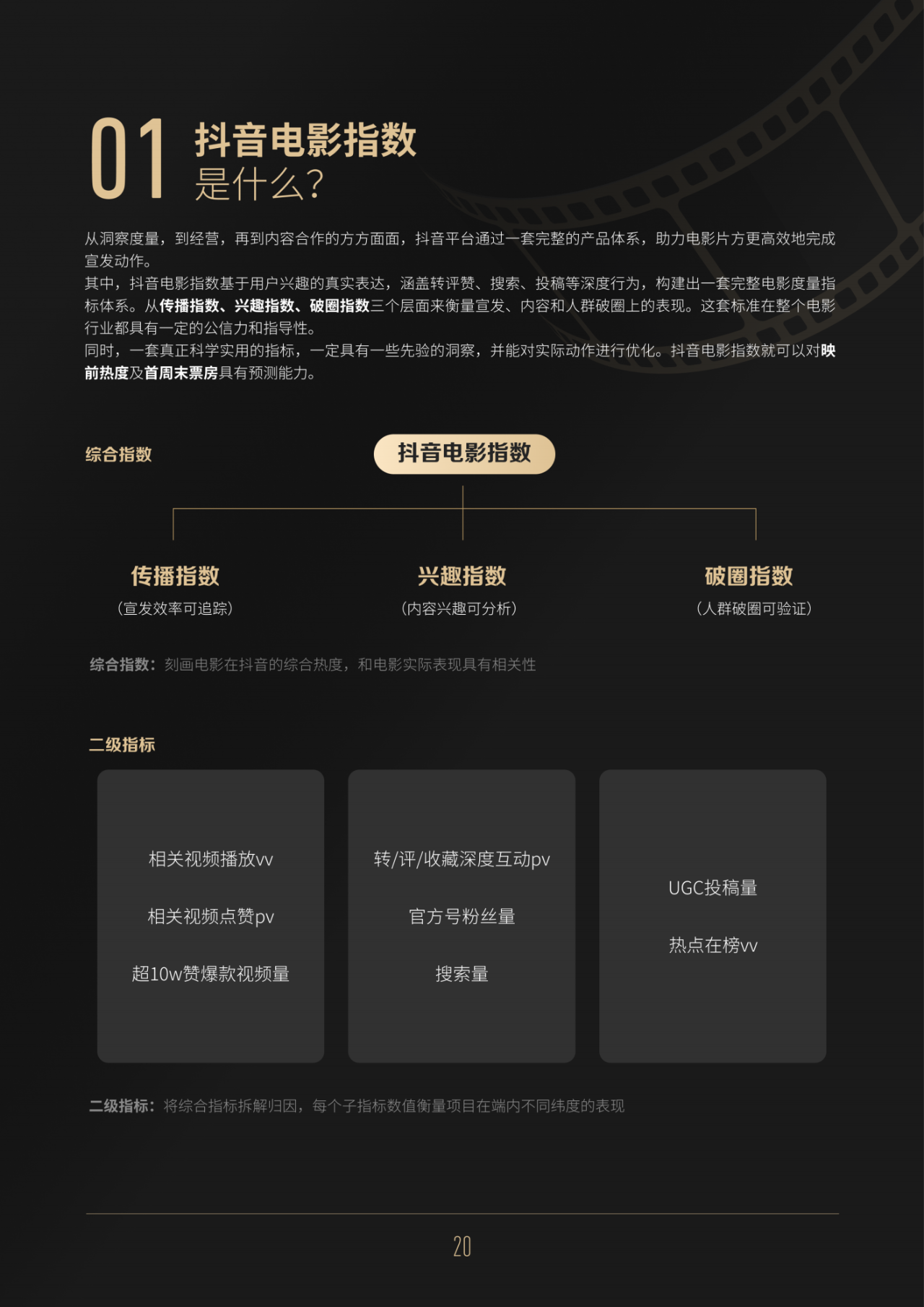 近日,抖音發(fā)布《抖音電影宣發(fā)方法指南》與《抖音劇集宣發(fā)方法指南》?!抖兑綦娪靶l(fā)方法指南》圍繞內(nèi)容種草、陣地經(jīng)營兩個(gè)核心方法,基于抖音電影指數(shù)及相應(yīng)產(chǎn)品,為行業(yè)提供電影宣發(fā)新解法。《抖音劇集宣發(fā)方法指南》通過對爆款劇集宣發(fā)經(jīng)驗(yàn)的梳理,外放劇集宣發(fā)方法論,并發(fā)布抖音劇集指數(shù),助力更多優(yōu)質(zhì)劇集實(shí)現(xiàn)內(nèi)容與商業(yè)價(jià)值的突圍。