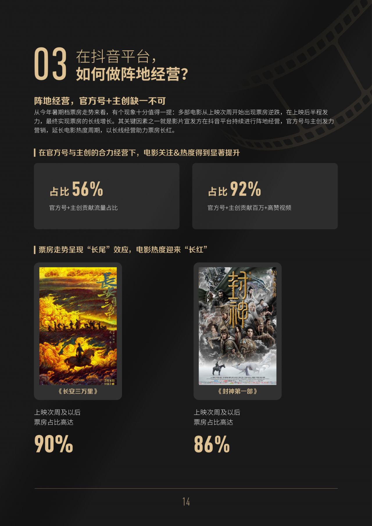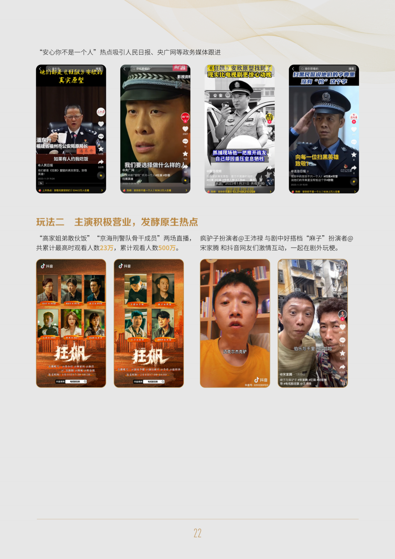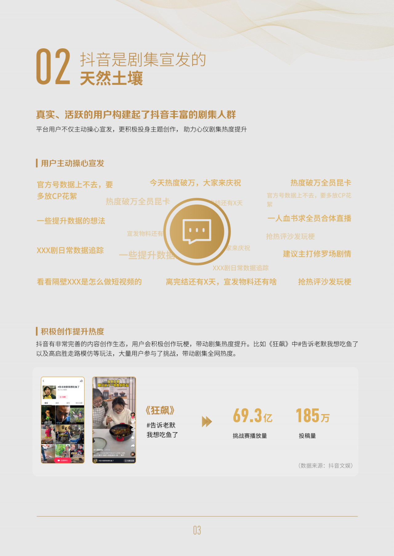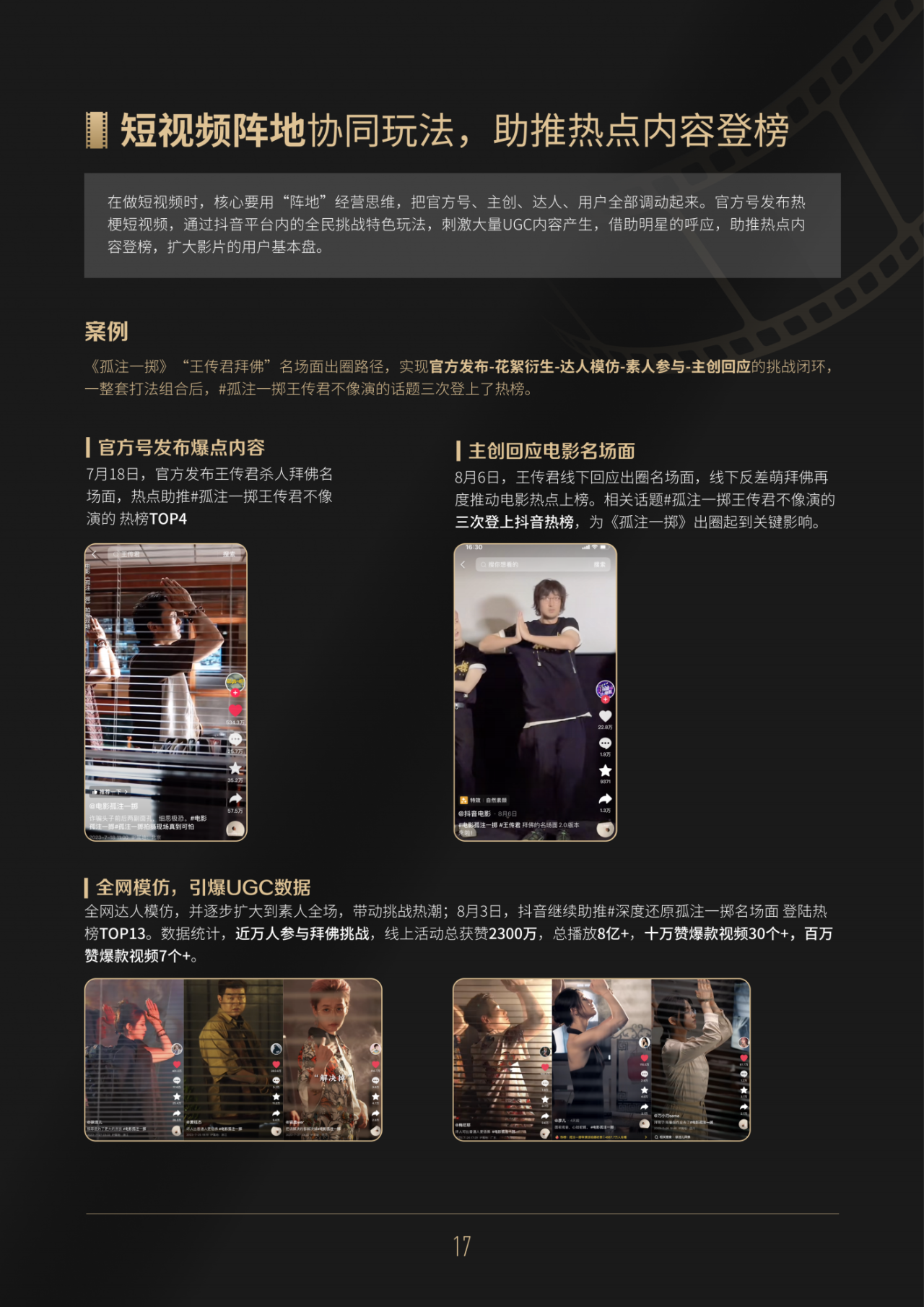 近日,抖音發(fā)布《抖音電影宣發(fā)方法指南》與《抖音劇集宣發(fā)方法指南》?!抖兑綦娪靶l(fā)方法指南》圍繞內(nèi)容種草、陣地經(jīng)營兩個(gè)核心方法,基于抖音電影指數(shù)及相應(yīng)產(chǎn)品,為行業(yè)提供電影宣發(fā)新解法。《抖音劇集宣發(fā)方法指南》通過對爆款劇集宣發(fā)經(jīng)驗(yàn)的梳理,外放劇集宣發(fā)方法論,并發(fā)布抖音劇集指數(shù),助力更多優(yōu)質(zhì)劇集實(shí)現(xiàn)內(nèi)容與商業(yè)價(jià)值的突圍。