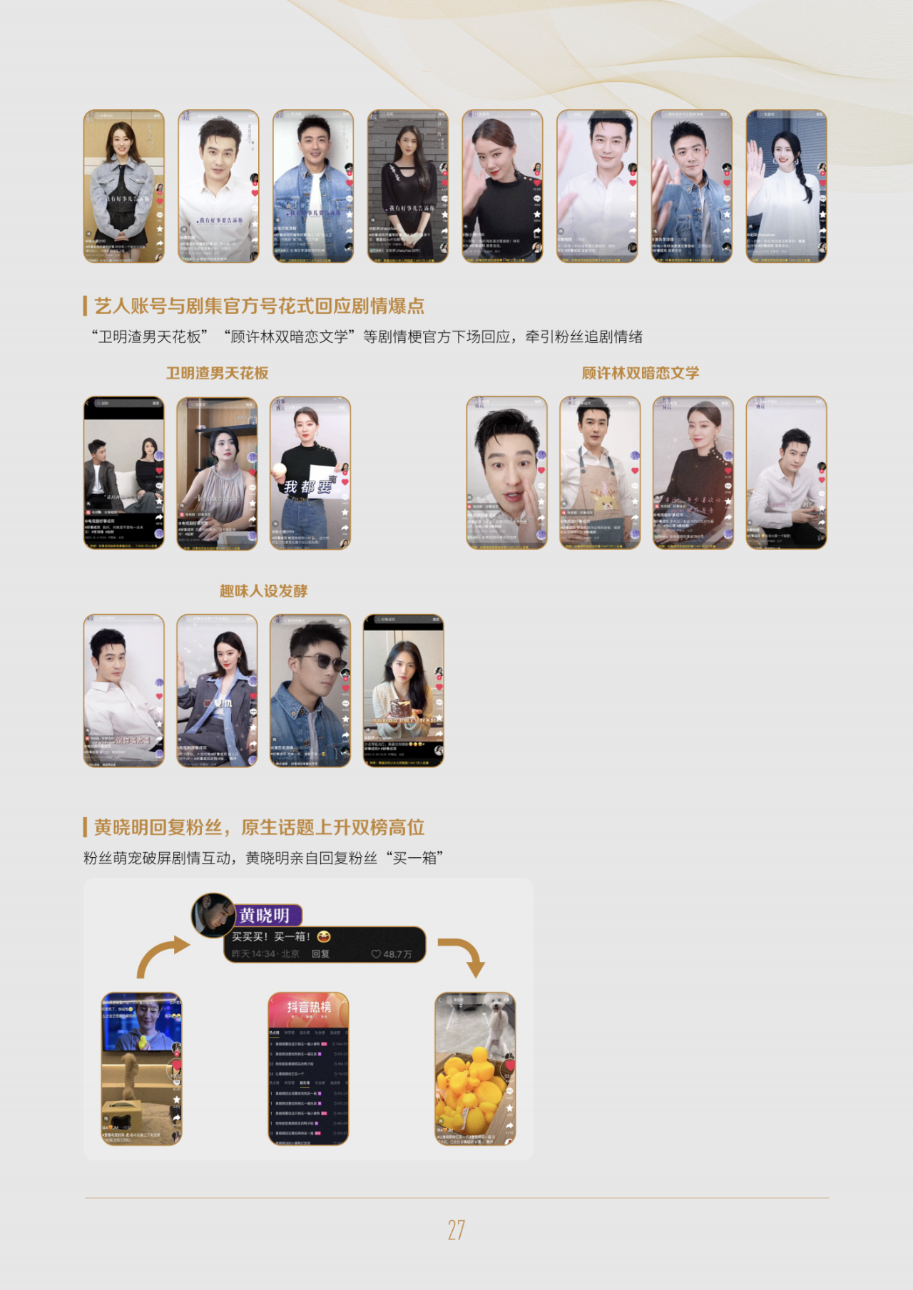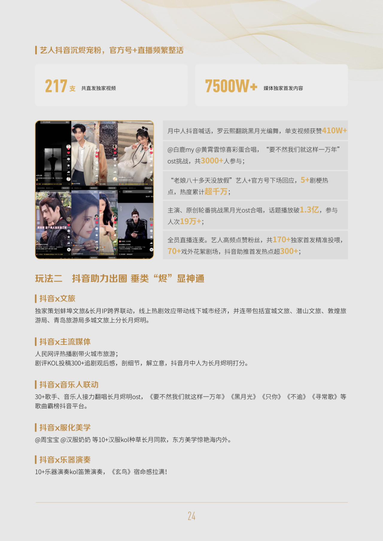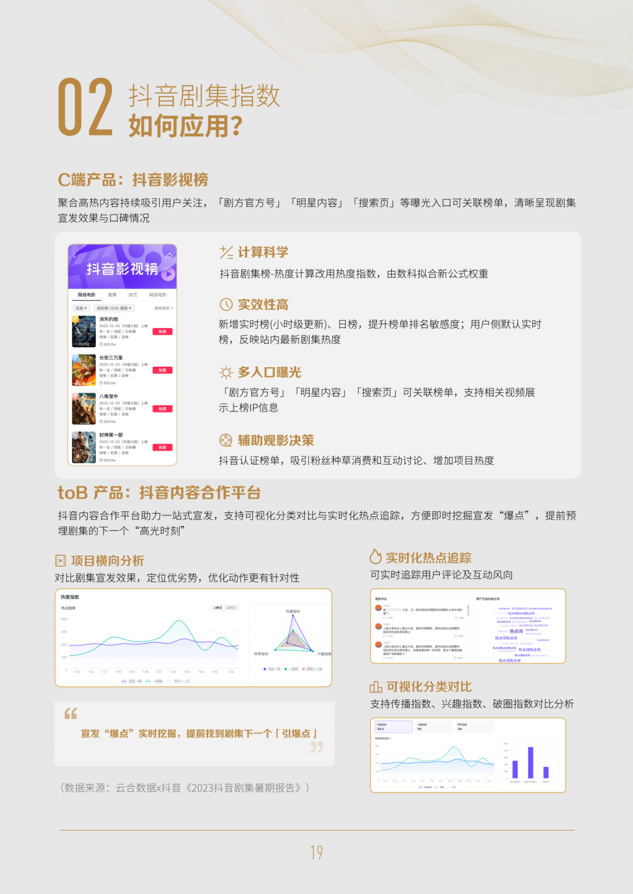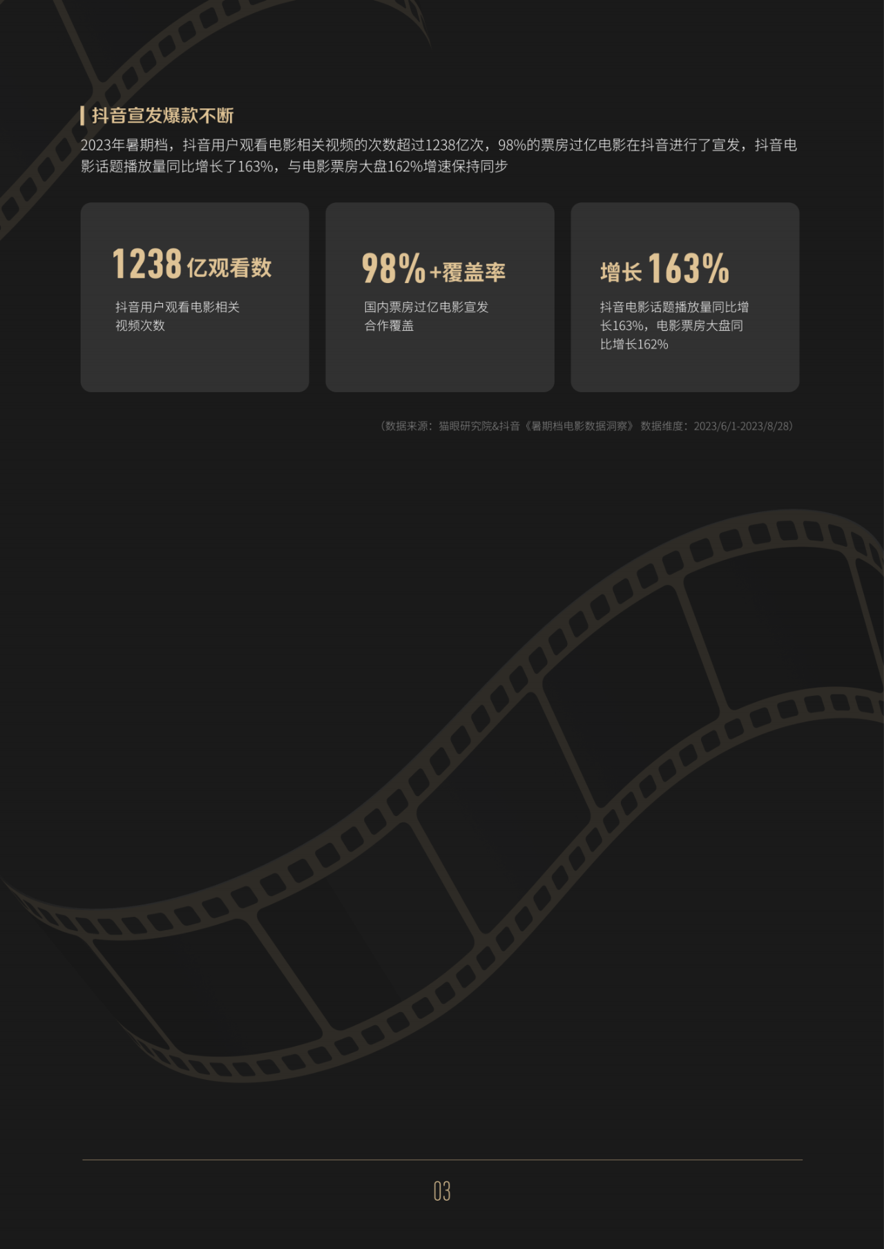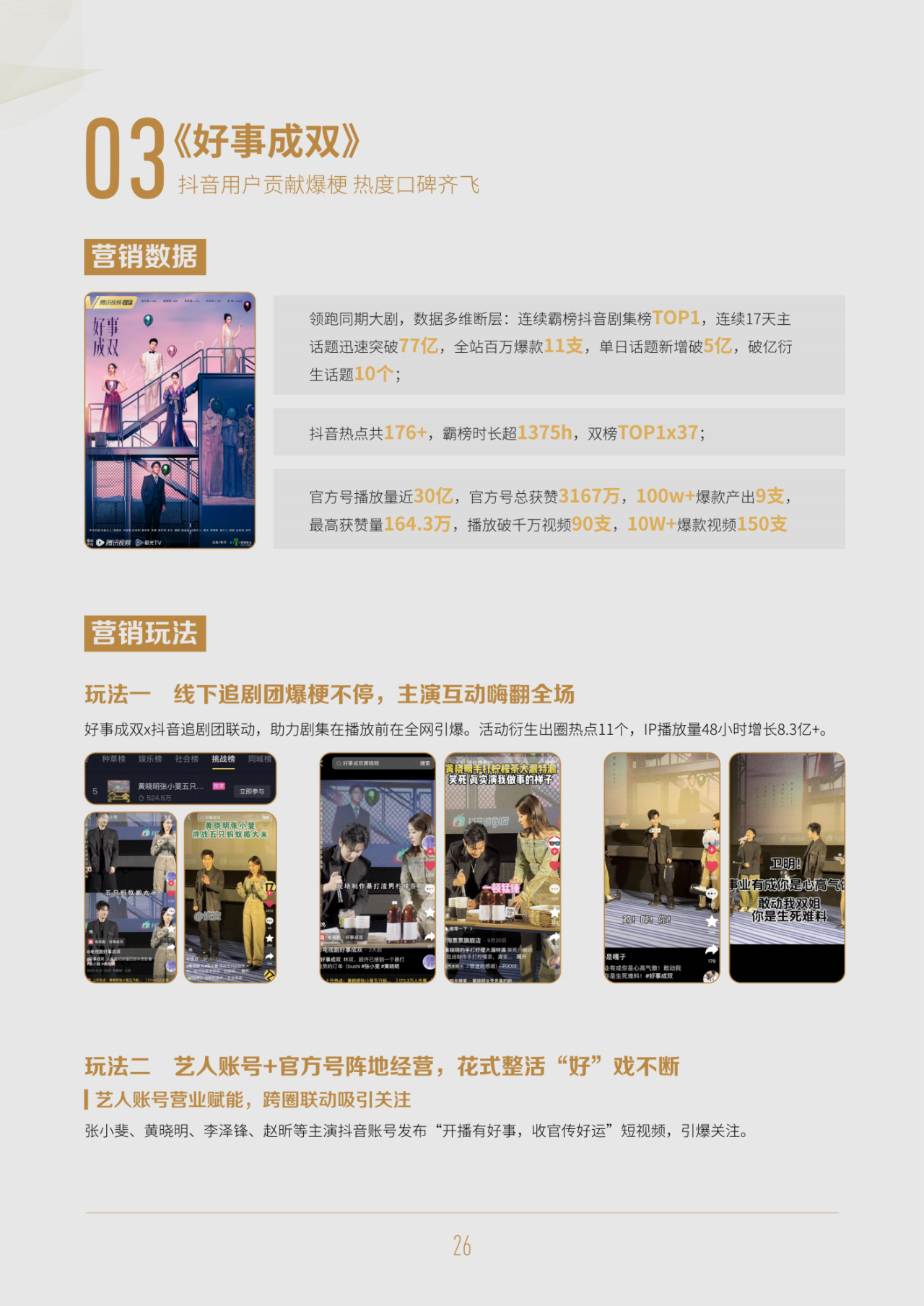 近日,抖音發(fā)布《抖音電影宣發(fā)方法指南》與《抖音劇集宣發(fā)方法指南》?!抖兑綦娪靶l(fā)方法指南》圍繞內(nèi)容種草、陣地經(jīng)營兩個(gè)核心方法,基于抖音電影指數(shù)及相應(yīng)產(chǎn)品,為行業(yè)提供電影宣發(fā)新解法。《抖音劇集宣發(fā)方法指南》通過對爆款劇集宣發(fā)經(jīng)驗(yàn)的梳理,外放劇集宣發(fā)方法論,并發(fā)布抖音劇集指數(shù),助力更多優(yōu)質(zhì)劇集實(shí)現(xiàn)內(nèi)容與商業(yè)價(jià)值的突圍。
