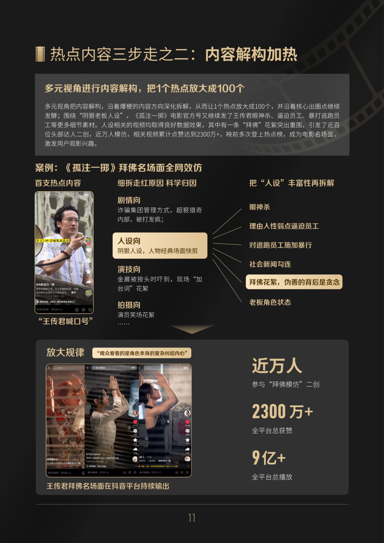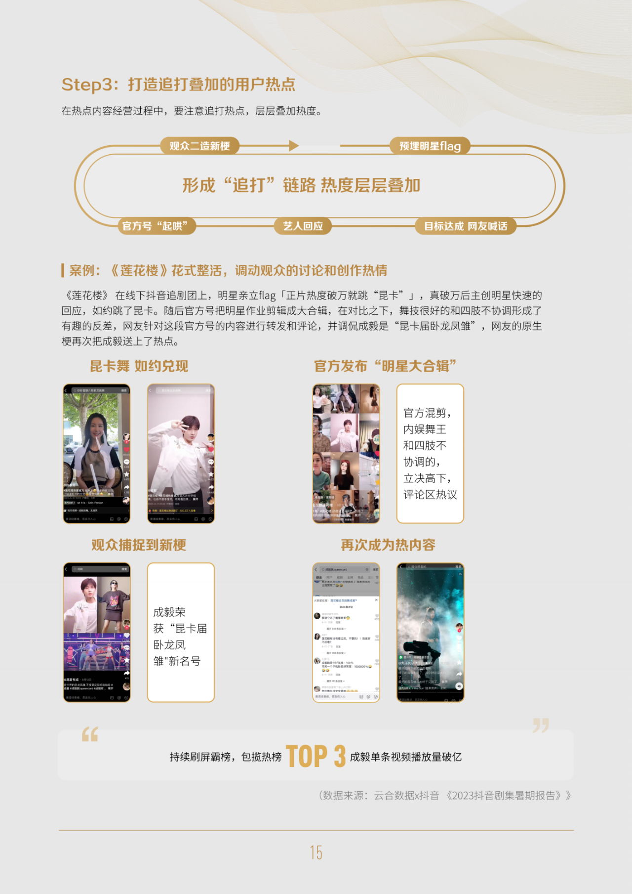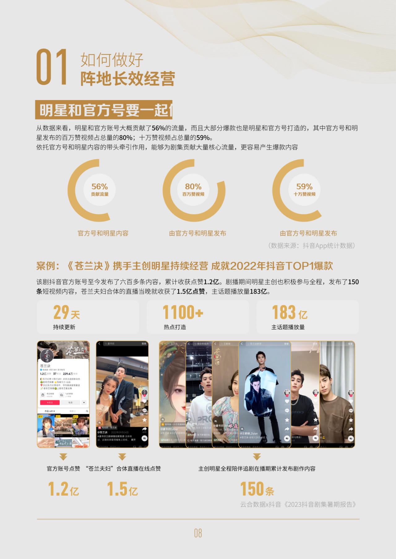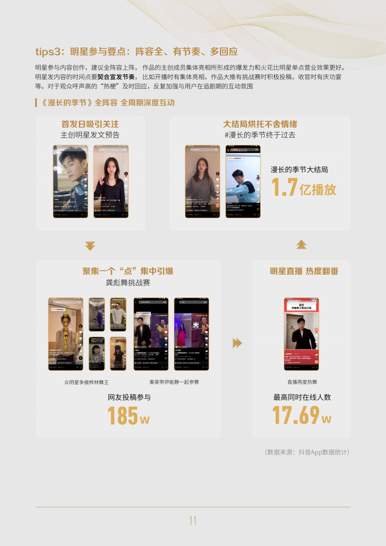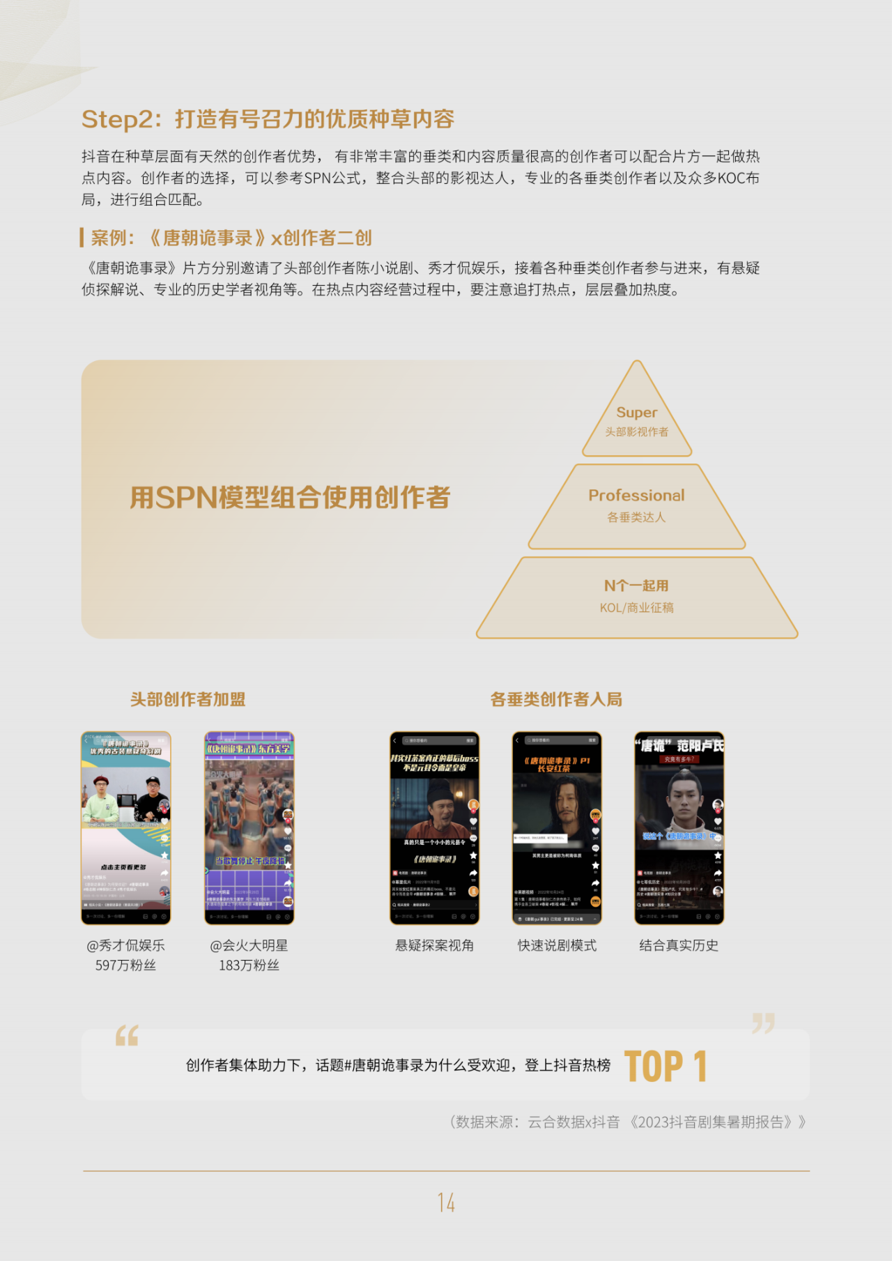 近日,抖音發(fā)布《抖音電影宣發(fā)方法指南》與《抖音劇集宣發(fā)方法指南》?!抖兑綦娪靶l(fā)方法指南》圍繞內(nèi)容種草、陣地經(jīng)營兩個(gè)核心方法,基于抖音電影指數(shù)及相應(yīng)產(chǎn)品,為行業(yè)提供電影宣發(fā)新解法。《抖音劇集宣發(fā)方法指南》通過對爆款劇集宣發(fā)經(jīng)驗(yàn)的梳理,外放劇集宣發(fā)方法論,并發(fā)布抖音劇集指數(shù),助力更多優(yōu)質(zhì)劇集實(shí)現(xiàn)內(nèi)容與商業(yè)價(jià)值的突圍。