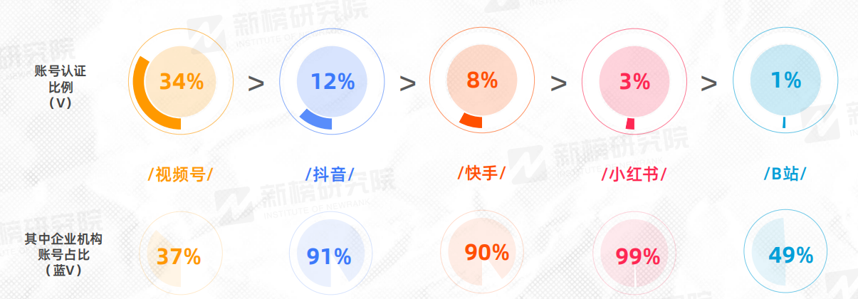 從創(chuàng)作者認證占比來看,視頻號文旅賬號認證比例最高,達到34%,抖音、快手跟隨其后;認證賬號中,小紅書企業(yè)及機構認證占比最高,其次是抖音和快手。