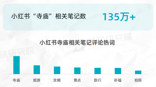 “年輕人熱衷寺廟旅游”“年輕人在上班和上進之間選擇了上香”在今年引發(fā)熱議,小紅書“寺廟”相關筆記數(shù)超135萬篇,寺廟成為了年輕人逃避現(xiàn)代都市壓力和競爭、尋找自我認同和歸屬感的重要場所。