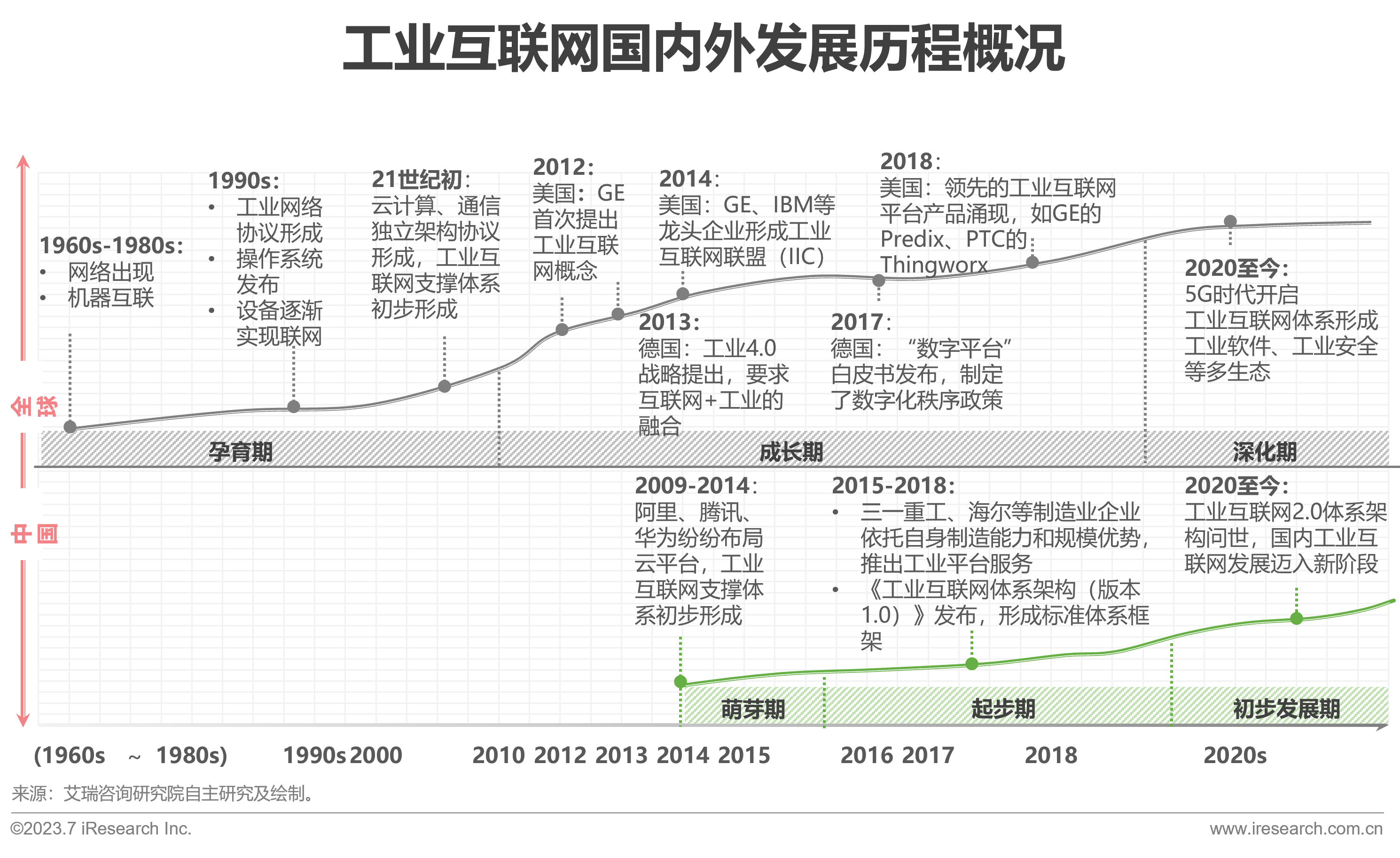 工業(yè)互聯(lián)網(wǎng)在工業(yè)網(wǎng)絡、云計算、現(xiàn)代通信等基礎上發(fā)展而來,于21世紀10年代初步形成。放眼全球,不同國家由于工業(yè)基因、工業(yè)技術的積淀不同,工業(yè)互聯(lián)網(wǎng)的發(fā)展路徑也不盡相同。美國堅持市場化原則,工業(yè)互聯(lián)網(wǎng)主要由巨頭企業(yè)和資本主導;德國更加注重產品質量和技術,圍繞整體的工業(yè)形態(tài)打造展開;中國則是在云平臺的基礎上,由政策領航助推,亦步亦趨前行,目前仍處于初步發(fā)展期。