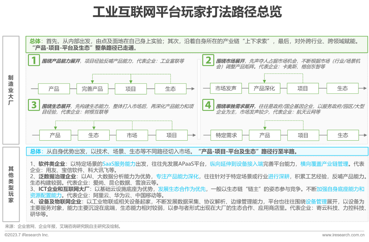 平臺玩家總體打法路徑呈現(xiàn)為“產品-項目-平臺及生態(tài)”,制造大廠已經(jīng)走通,其他類型玩家現(xiàn)行至半路