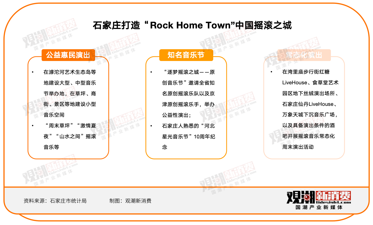 北京在2023年的政府工作報(bào)告中首次提出要“努力打造‘演藝之都’”;石家莊市則高調(diào)宣布要成為中國的“搖滾之城”,并在2023年7月至10月舉辦了一系列搖滾音樂演出活動(dòng)……