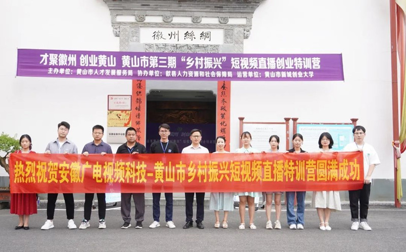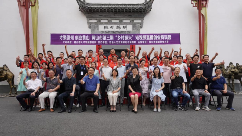 6月24日下午,由安徽廣電視頻科技有限公司承辦的“才聚徽州 創(chuàng)業(yè)黃山”——黃山市第三期“鄉(xiāng)村振興”短視頻直播創(chuàng)業(yè)特訓(xùn)營正式開營。黃山市人民政府副市長江卓琪,黃山市委組織部副部長、市人力資源和社會保障局黨組書記、局長程燕,歙縣縣委常委、深渡鎮(zhèn)黨委書記劉和仙,歙縣人民政府副縣長林一凡出席儀式。黃山市人力資源和社會保障局黨組成員、副局長范琪,安徽廣電視頻科技有限公司新媒體學(xué)院院長陳佳麗共同主持儀式。